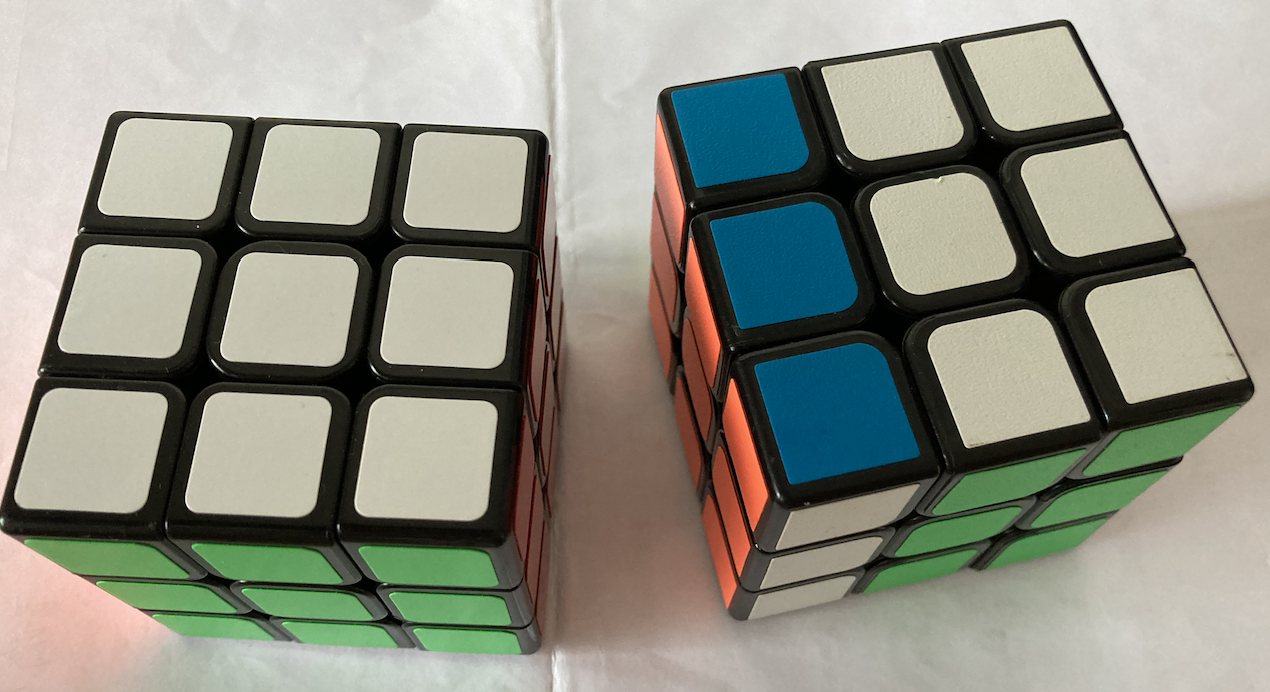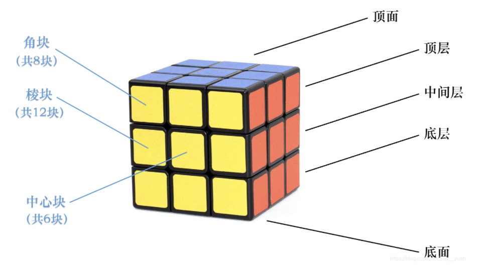 - 最简单的理解,只有一种颜色的,叫中心块,两种颜色的叫棱块,三个颜色的叫角块。