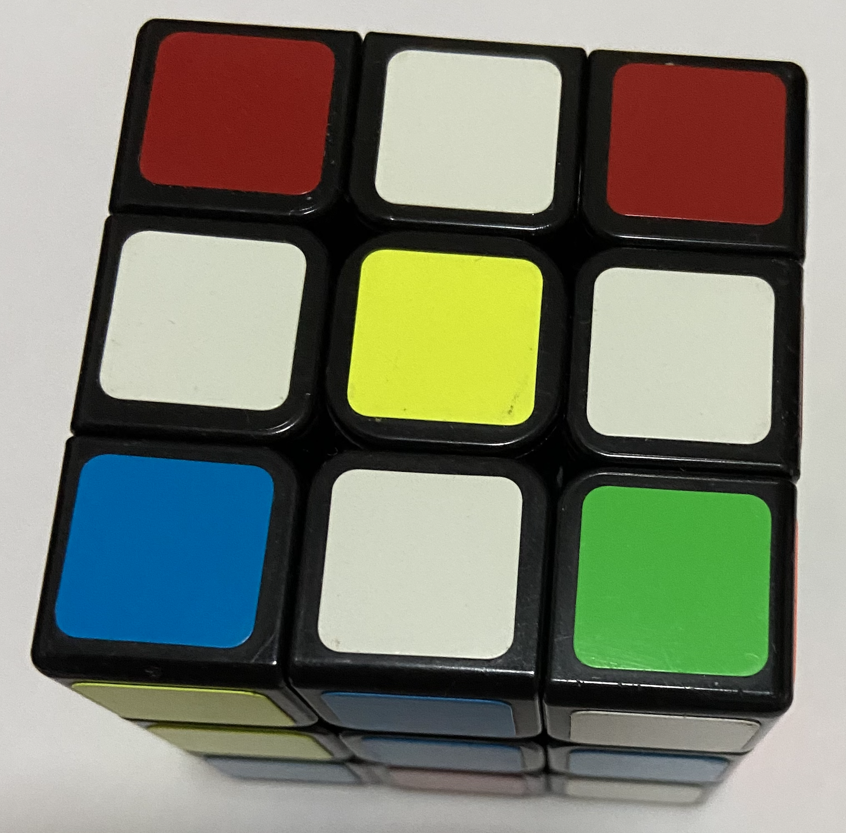 此时看底面黄色面,可以看到右侧白色已经转到该面了: