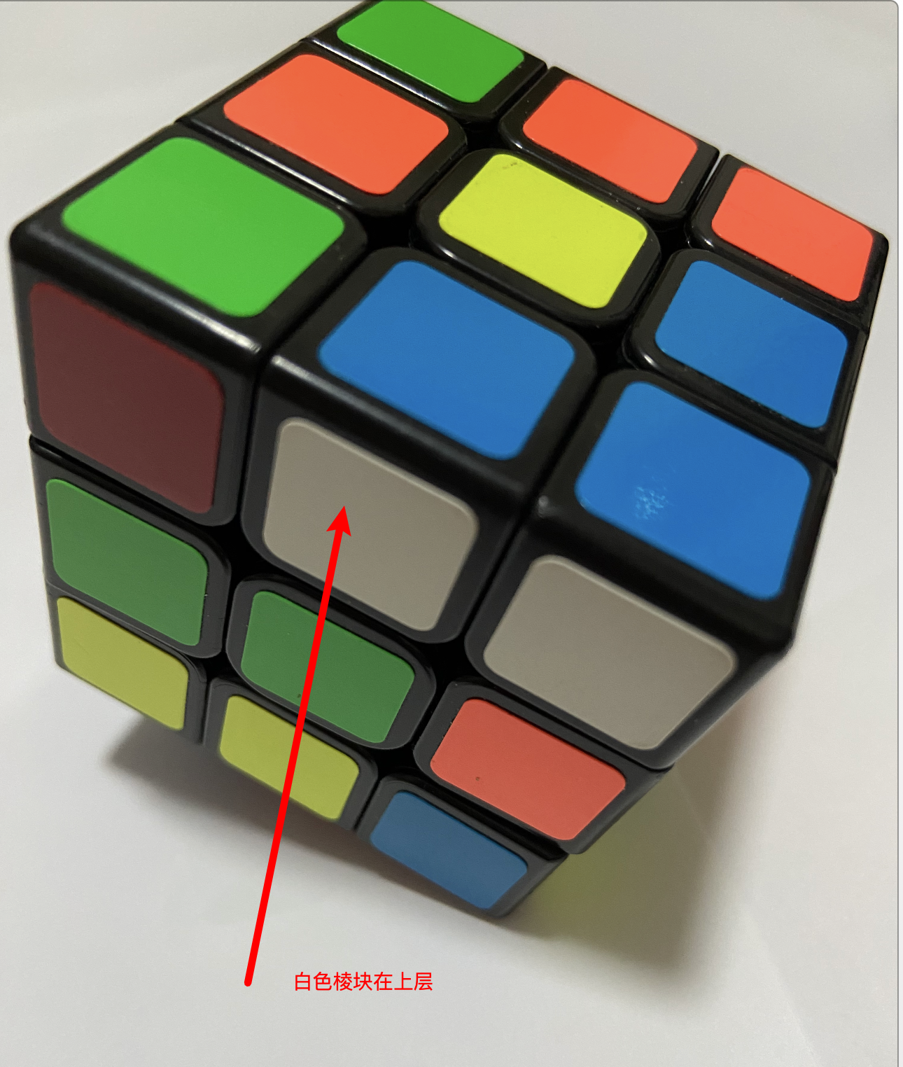 白色棱块在黄色中心块的正下方,也就是白色棱块在底面的情况。