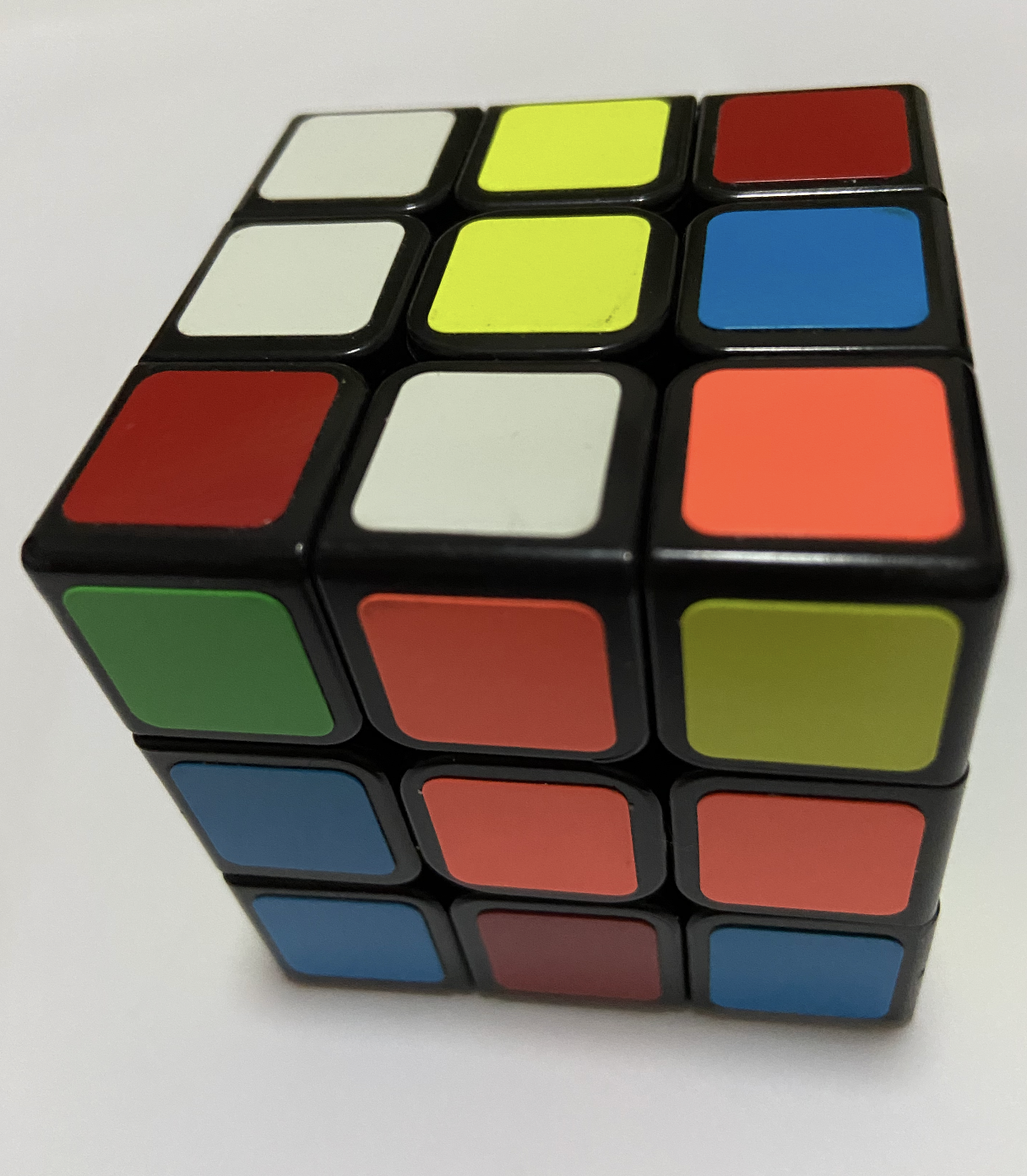 转到后,白橙棱块的橙色面已经与橙色中心块对齐了: