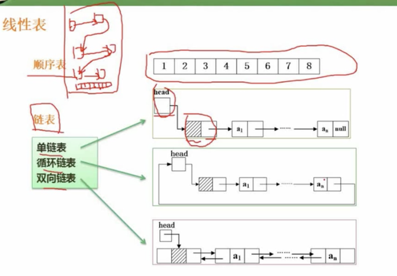 - 线索二叉树是在二叉树的基础上会有虚线的箭线,把很多节点串起来,这就是线索二叉树。