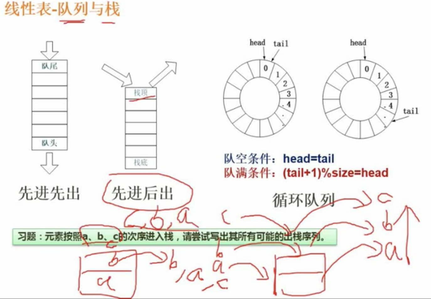 - 对于左侧的前序线索二叉树,D空出两个指针了。前序遍历访问顺序是根左右,所以二叉树的访问顺序依次是A、B、D、E、H、C、F、G、I。所以D的前驱节点是B,D的后续结点是E,所以从D出来绿色虚线指向B,红色虚线指向E。同样H的前驱是E,H的后续是C,因此有绿色虚线指向E,红色虚线指向C。加了这些线索后,能够让我们的遍历变得更加快捷。